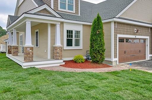 LOCATION, LOCATION - BEAUTIFUL SETTING IN DRACUT'S NEW 55+ LUXURY ADULT COMMUNITY- Elegant, carefree, ONE-LEVEL Carriage Homes w/access to prestigious Four Oaks Country Club. Fox Hill is designed w/ community & safety in mind. Each home setting is designed to bring neighbors together yet features exclusive use areas providing privacy.Architecturally designed w/ covered porch w/ decorative stone columns leading you to your private side entrance. Enjoy your morning coffee in your comfortable Sun Room, entertain your family & friends in your elegant, open, & spacious floor plan, flooded with natural light.Chef's delight custom kitchen w/ breakfast bar and granite counter tops overlooking vast family room. 2 spacious bedrooms including master suite w/ a large walk-in closet & private bath featuring tiled shower & double vanity.Other amenities include 9' ceilings, tray ceiling in MBR, wood & tile floors, A/C, FP, 2-car garage, full basement, laundry room, & nice deck overlooking rear yard