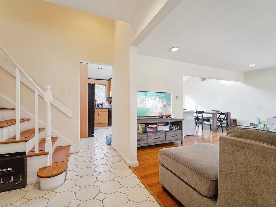 Fantastic location! This stunning Split Level home sits at the end of a quiet dead-end street, bordered by beautiful woods for added privacy. As you step inside, you'll be welcomed by an open floor plan featuring gleaming hardwood floors throughout the living room and dining area. Sliding glass doors lead to an expansive deck perfect for entertaining or relaxing in your private backyard. The open-concept kitchen boasts granite countertops and ample cabinet space. Upstairs, you'll find a full bathroom, two spacious bedrooms, and a primary suite complete with its own full bath and two large closets. The lower level includes a two-car garage, an additional full bathroom, a home office, a rec room, storage space, and a laundry room. Tenant requirements: NTN credit check, interview, 1.5-month security deposit due at lease signing. Tenant is also responsible for lawn maintenance and snow removal.