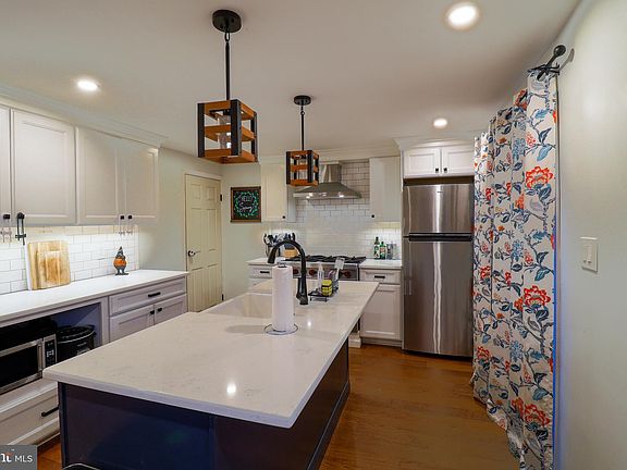 Step into comfort and style at this fully renovated 3-bedroom, 1-bath home located on a quiet block in the heart of Ridley Park. The first floor features an open and airy layout with hardwood floors, recessed lighting, and fresh neutral paint throughout. The kitchen is a standout, boasting quartz countertops, stainless steel appliances, tile backsplash, and soft-close cabinetry. Upstairs, you'll find three spacious bedrooms and a beautifully updated full bathroom with modern tilework and fixtures. Outside, enjoy a private fenced-in backyard complete with a brand new shed (with electric) — ideal for tools, bikes, or extra storage. Don't miss your chance to own this turn key home!