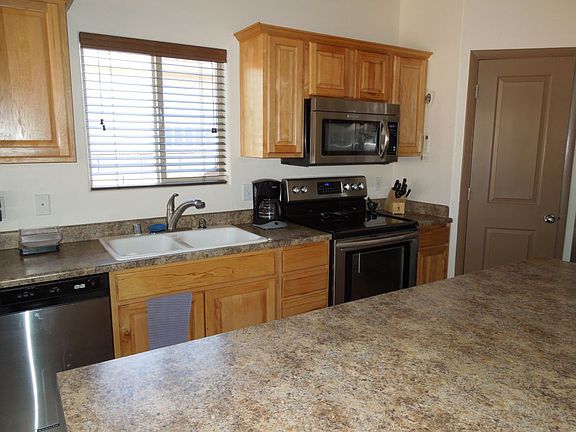 If you're looking for casual living in a no HOA neighborhood this is your ticket. This spacious, open floor plan has 3 bedrooms, 2 full baths, gated RV parking and a 2 car garage. Newer, stainless steel appliances, custom window coverings, carpet and three tone paint add to the pride of ownership. Also upgraded were the larger AC unit, hot water heater and comfort height toilets. Master ensuite features walk-in closet, corner jetted tub, large, walk in shower and dual vanities. Access to patio from the master bedroom & dining room. Separate laundry room with cabinets and corner pantry in kitchen add more storage. Wonderful backyard space waiting for your own oasis . . pool, desert scape, putting green?? You decide but just know with the covered patio and full block wall you have plenty of privacy. Close to schools and city rec center. Escrow started at Equity Title with Stacey Bixler. Both sellers & buyers will receive a 30% discount on their escrow fees. Easy to show!