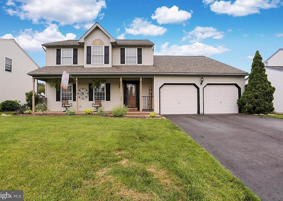 Blandon Meadows Beauty! Welcoming front covered porch, perfect for the summer nights relaxing on the chairs. Walk-in the front door to a nice tile foyer area with a large coat closet & powder room. formal living room leads into your dining room with beautiful chair rail & crown molding. Kitchen open to family room which is perfect for all the family gatherings. Kitchen offers ample cabinet space, pantry, stainless steel appliances, breakfast bar with stool space. Opening into the family room with a beautiful accented gas fireplace. Upstairs you will find 4 spacious bedrooms and 2 full baths. Master bedroom with walk-in closet and oversized full bath with double vanity sink. Also located on the 2nd floor is your laundry room. Get ready for a little more space... full finished basement with bar and storage area. Great backyard with a fence, shed & deck area. 2 car garage, economical gas heat and central air. This home has everything you are looking for and more.