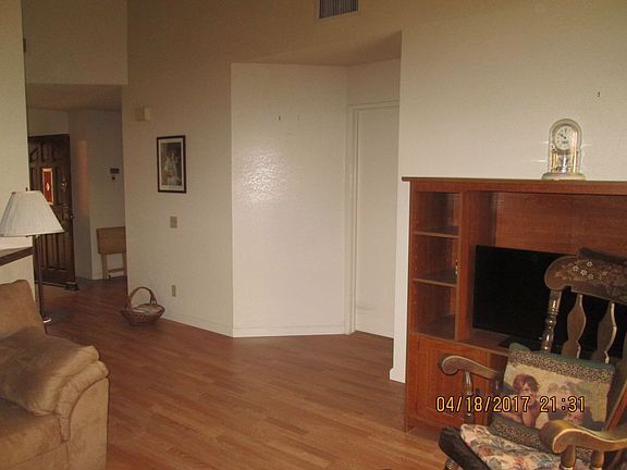 Nice condo in Heritage Fountains.....Well kept Two Bedroom..one has two closets... two full baths....one with a garden tub...both bathrooms have handrails for safety....Open living room with high ceilings and a fireplace....Flooring in common areas are wood laminate...Storage cabinet in hallway....Kitchen is open to dining area and has built-in dishwasher..stove/oven...the laundry room is in a separate room off the kitchen...where the water heater and natural gas furnace are located..There is a covered patio in the rear yard...the cooler is a ground mount and vented throughout the home...Dining table stays as well a the two large cement flower pots in the patio.