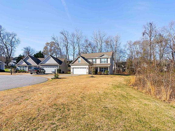 This easily accessible Fountain Inn home is five years young, and is tucked away in a private culdesac in Country Chase neighborhood. With no homeowners association, and easy access to the Swamp Rabbit Trail within the city park (with outdoor exercise equipment) inside the neighborhood, you will feel right at home here. Speaking of right at home, the laminate floors throughout will make this an easy choice for those with allergies! The covered front porch will be a protected place that you can relax and watch the world go by. Inside, you enter into a living room that is just steps away from a powder room and well appointed eat-in kitchen. Plenty of natural light floods these rooms and you get to overlook your level backyard that backs up to woods. The kitchen offers white cabinetry with island, subway tile backsplash, stainless steel appliances, and granite countertops! Off the back door, there is a poured concrete patio and you can easily tend to your two raised garden beds! Beautiful landscaping is bordered by river rock in this space. Upstairs, you will find a master suite with dual vanities, walk-in closet and separate water closet. The laundry, two secondary bedrooms (one with a walk-in closet), another full bath, and bonus room are all also located on the second level. Per sellers, there has been additional flooring added to the attic for extra storage. You likely will not find a more precious or well kept home for the money in this area! With easy access to I-385, Simpsonville, and Greenville you will love to live on Catterick Road! Home is located in an area that qualifies for 100% USDA financing.