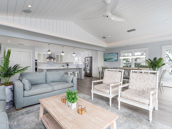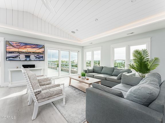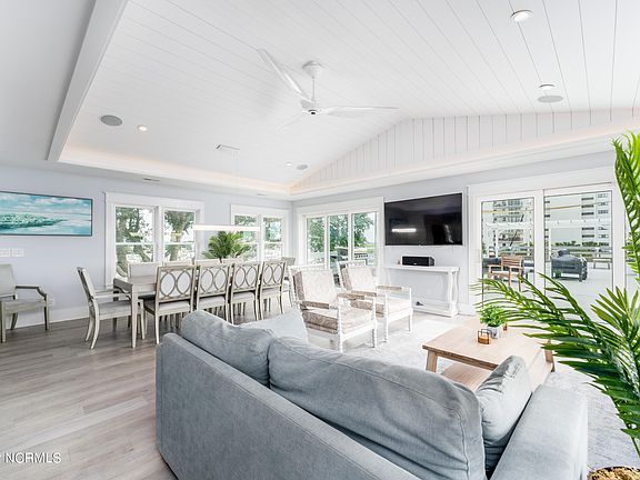 Boater's paradise! Start all your saltwater days in this iconic, six bedroom, 5 ½ bath Wrightsville Beach home. This unique property was constructed by prominent Wrightsville Beach developer Donald Gilstrap (Developer of Seapath Yacht Club & some of Wrightsville Beach's most sought-after properties) as his personal residence. The current owner took the interior to the studs and redesigned & reconstructed an optimal floorplan, opening up the space and accentuating the views. Renovations included a new roof, new HVAC, updated plumbing & electrical features in addition to the newly updated layout and cosmetic improvements. The reverse floor plan maximizes the endless water views with the kitchen, living & dining rooms on the top level (3rd floor) and flows between the outside & inside spaces. This level has an open, spacious layout with a cathedral shiplap ceiling in the living/dining area & two sets of triple- door sliders leading to the 1,830 sf rooftop deck. The private mini marina includes rare and unmatched boating/docking opportunities. The docking this property includes is rare, unique & incredible. The covered dock area/boat garage can accommodate a vessel as large as approx. 55-60ft. The west side dock could accommodate multiple smaller vessels or jet skis & the corner dock area with approx. 75 linear ft of dock for vessels. All this dock space in your own sheltered backyard boat basin with no wakes or boat traffic. Dock space in this area sells for approx. $6,300-$6,800 per ft. Boat, kayak, paddle board or just enjoy the panoramic saltwater views this home has to offer. Some additional features are: an elevator, Hot Tub, Sauna, ice makers, wine fridge, bedroom breakfast bars, built in captains bunk beds, oversized garage & an approx. 3,000 sf in patio, covered patio, screened porch and rooftop deck area (combined). This exceptional home offers a superb opportunity for the ideal boater lifestyle.