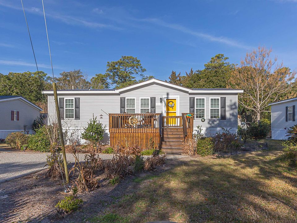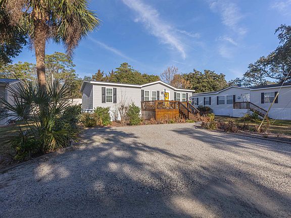 Beautiful home, located steps from the marsh, and minutes from the beach is a true cutie! This home has a brand new HVAC system and is more than accommodating with tons of storage and cabinet space, as well as large bedrooms, walk-in closets, and bathrooms, with pet protection carpet in all three bedrooms. Two additional outdoor storage sheds (10X12 and 8X4), relaxing back deck, and outdoor shower gives this beach home even more charm. Waterford Oaks is a residential mobile home community on leased land with a community fishing pier, gazebo ,and boat ramp with access to the marsh for residents. Home has new storm doors, new pane windows, one year old metal roof. New kitchen appliances!