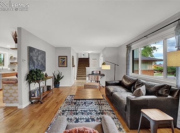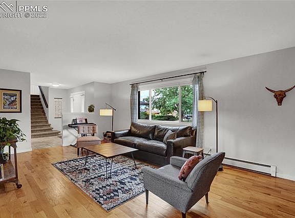 Quietly tucked away in the very popular Crystal Hills neighborhood, just minutes from Red Rock Canyon Open Space, downtown Manitou, and w/easy access to the highway, this home can't be beat when it comes to location! Upgraded features inside and out! Renovated kitchen (quartz countertops, backsplash, new stove, sink, faucet, can lighting, custom made wall shelving, pantry) - Fully remodeled primary bath w/new vanity, shower, tile floor w/walk-in shower and rain shower head - New vanity in lower level bathroom - New windows on main level, in both east-facing bedrooms upstairs, and the basement - Recently renovated basement w/luxury plank vinyl flooring, trim, paint - New trim throughout entire house (all floors) - All new light fixtures (interior and exterior) - New ceiling fans in upstairs bedrooms and dining room - Norman brand window shades on main floor and upstairs bedrooms. The backyard is quite the oasis with immaculate landscaping, large deck and patio, custom built club house/garden shed with rooftop deck, and an oversized storage shed. Dedicated parking for camper on the side of the house w/30 amp electrical outlet dedicated for camper charging. New boiler, roof, electrical panel, exterior paint, garage door opener, whole house fan. Come see this beauty of home today before it's gone!