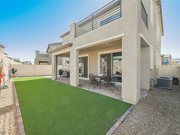This is your chance to buy a nearly brand new home! This beautiful, pristinely maintained, two-story home is located in a gated neighborhood with a park and community pool. The backyard includes a covered patio and the seller has upgraded with low-maintenance pavers and artificial turf. As you arrive, you'll notice the modern curb appeal. You'll walk into a gorgeous wide foyer that leads into the great room and flows seamlessly into the dining + kitchen areas.The bright and airy kitchen has dark modern cabinets, light granite and features an island with ample counter space for cooking and meal prep. Did I mention the spacious pantry? The primary bedroom features an ensuite balcony with sliding glass doors overlooking the backyard. The primary bathroom is equally as impressive with double sinks, a large tub and separate walk-in shower! All bedrooms have ceiling fans with lights. Two bedrooms have walk in closets. Front door has security door. Congratulations, you have found your home!!