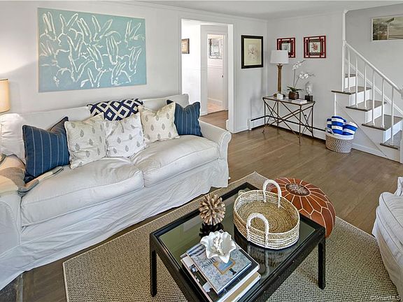 Tastefully updated beach cottage! Enjoy this charming 3 - 4 bedroom 2 full bath home in pristine condition just steps from Compo Beach. Enter through the privacy gate into an enchanting garden area. The "Mouse House" will exceed all expectations. This is truly a private oasis in the most desirable beach location in Westport. The sophisticated and cozy living room includes a wood burning fireplace, den can double as a 4th bedroom, additional bedroom on the main floor with a full bath, light and inviting white kitchen with marble counter tops opens onto a charming deck. Upstairs the master bedroom has a vaulted ceiling. Additional bedroom upstairs. House has Central A/C and gorgeous hardwood floors throughout.
