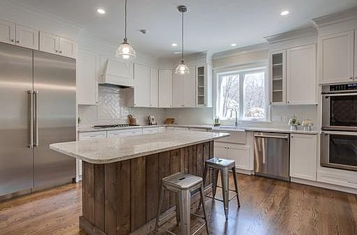 If you are drawn to homes that are unique yet beautiful, casual yet refined, do we have the place for you! This new construction farmhouse has been carefully designed & crafted by one of the area's premier luxury home builders. The floor plan is unusual & unexpected - it is completely open & meant for every day living. The beautiful kitchen graces the rear of the home, with views over the sprawling and private flat backyard. We love the shiplap island, classic white cabinetry and white farmer's sink. The adjacent dining room has a built-in wetbar and stunning coffered ceiling, with French doors to the patio. After a long day, relax in the spacious family room, with custom built-ins & gas fireplace w/oak wood mantle. Upstairs you'll be pleased to find 4 spacious bedrooms, including the master suite w/custom walk in closet & stunning master bathroom with soaker tub and beautiful shower. One bedroom w/private bath & 2 bedrooms share a Jack & Jill bath. 2nd floor laundry. Bike path access!