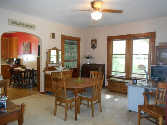 Located in the heart of Burlington, close to downtown and schools, is where you'll find this 3 BR, 2BA home filled with old-world charm! Formal Dining Room with original ornate trim & built-in china cabinet. Eat-in Kitchen, Living Rm w/large picture window, 1st floor Master Bedroom w/dual entry bath to Kitchen. Deck off Kitchen leads down to patio and yard with mature trees. 2 car detached garage, full basement, nice-sized rooms, central air, covered front porch & bonus 15x7 walk-in closet upstairs. Home Warranty included. Call this home yours before it's gone!