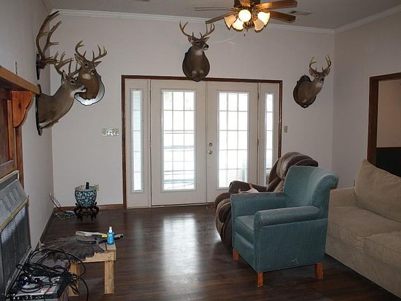 Country Retreat! 3BD/2BA, brick home sitting on 84.8 acres 1980 sq ft , one level home features large well designed eat in kitchen, formal dining room, gigantic laundry room, fireplace with gas logs in family room, master suite includes whirlpool tub and shower and 2 car garage. Roof only 5 yrs old. All property is fenced. About 55 acres fenced for cows, Large 3.5 ac pond stocked with catfish 4 other small ponds , 50 x 60 architectural neat shop, 90 x 100 architectural metal barn, huge chicken coop, dog pin with concrete floors. (Trees have been thinned. All whitetail deer in photos were killed on this property. ) All info subject to verification. Agents see private remarks.
