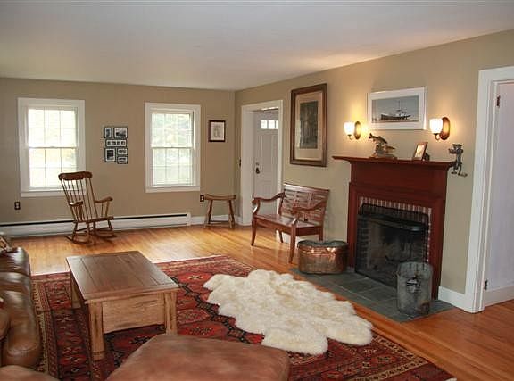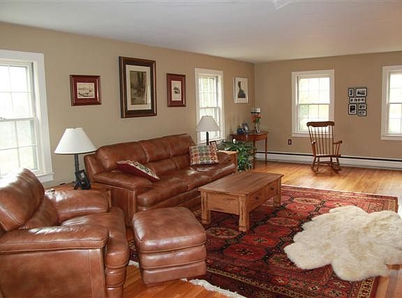 Spacious brick Cape with large addition in a terrific neighborhood. Set beautifully on 1.87 acres near the end of the road this warm and inviting home offers 5 bedrooms, 3 full baths and over 3,000 square feet of living space.Features a modern kitchen with stainless steel appliances, formal dining room, large living room with wood burning fireplace, 3 season rear porch, large study, family room, play room and more. Some hardwood floors, many built-ins, ceiling fans, and great conveniences throughout make this a one of a kind find. Outside you'll find a large yard, 2 car attached garage, and garden areas.