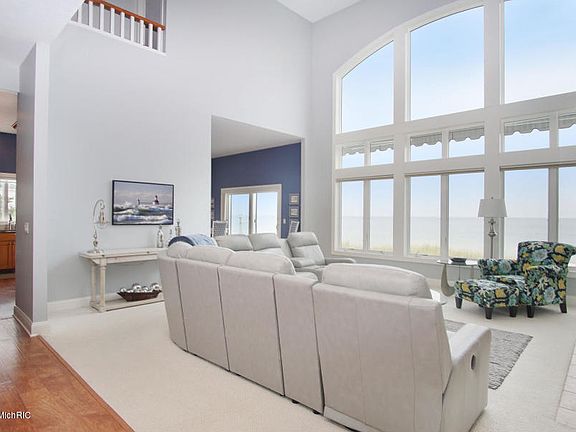 Captivating Lake Michigan no bluff waterfront home with 106 feet of frontage, beautiful sandy beach, & incredible views of the channel and Lake. This 4 bedroom, 4 bath home offers 3,940 square feet of living space, with a beautiful 2 story living room including floor to ceiling windows to capture the awe-inspiring sunsets. Relax in the serene sunroom, or soak in the sun on your private deck. The unique upstairs in-law apartment offers fully furnished kitchen and washer and dryer makes this an extra special home for friends and family to visit. Privacy abounds you with a dead end street an easy walk to the beach to take in miles of lakeshore or take a short drive to beautiful downtown Manistee. Call for your private showing today.