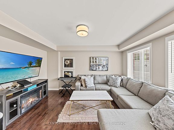 Stylish Mattamy-Built Townhome in Prime Harrison Location! Welcome to this beautifully upgraded 1,733 sq ft townhome, thoughtfully designed for busy professionals and growing families who value space, style, and convenience. Nestled in Miltons highly sought-after Harrison neighbourhoodright at the foot of the escarpment-this home offers the perfect blend of modern living and natural charm, with schools, parks, shops, and local amenities all just a short stroll away. Freshly painted and move-in ready, this 3-bedroom home showcases a bright, multi-level layout that gives everyone their own space while keeping the home feeling connected. The ground level welcomes you with a generous foyer, a versatile family room (ideal as a 4th bedroom, home gym, or office), and a mudroom that keeps coats, shoes, and bags neatly tucked away. At the rear, a rare double car garage with interior access ensures you'll never have to brave the weather while coming or goinga true bonus in Canadian winters! Up a few steps, youll discover the heart of the home: an expansive living room with a cozy office nook, ideal for working from home or keeping an eye on homework. The chef-inspired kitchen boasts rich modern cabinetry, sleek quartz counters, stainless steel appliances, subway tile backsplash, and an abundance of storageincluding a full pantry. Whether you're hosting friends or enjoying a quiet dinner, the large eat-in area and oversized terrace (perfect for summer BBQs or morning coffee) make entertaining effortless. The upper level features three spacious bedrooms and two full bathrooms. The primary retreat includes hardwood flooring, a walk-in closet, and a private ensuiteoffering the perfect spot to unwind at the end of the day. This is low-maintenance living at its best, in one of Miltons most desirable communities. Dont miss your chance to call this stunning townhome your own!