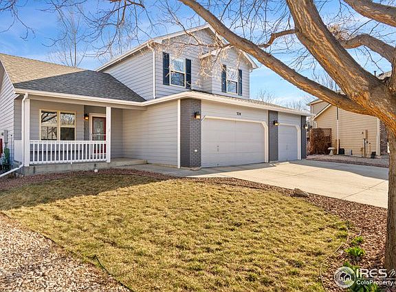 BEAUTIFUL 2 story, 4 bedroom home w/ private covered front porch in north Loveland. 3 bedrooms 2 baths upstairs. 1 bedroom and a 3/4 bath as well as large family room in the finished basement. Pride of ownership reflected in the the updates (floors, kitchen, and finishes throughout. 3 car garage w/ service door. Professionally landscaped w/ sprinkler sys. Large fenced backyard outlined by mature trees along with the pergola for great outdoor space! Great cul-de-sac location. Quick access to 287.