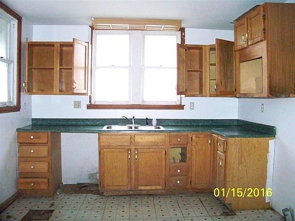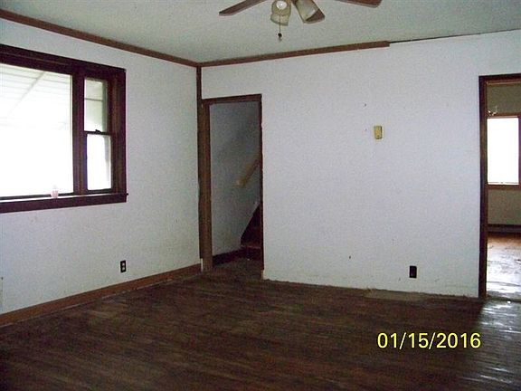 Large corner lot, possible 3 bedrooms. Covered porch, detached block garage needs a new roof. Home needs rehabbed and selling "AS IS". Need proof of funds with all offers.