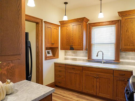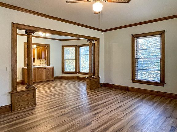 Yesteryear's charm meets timeless, quality craftsmanship at this lovely 2 bedroom, 1 bath home on Frederick Street in Rhinelander's historic courthouse neighborhood. The home's main level offers a formal front entry, a spacious living room w/ ornately detailed columns that lead to the adjoining dining room, a nicely appointed full bath, two bedrooms (one w/ walk-in closet), laundry toward the back entrance, and a gorgeous Frasier kitchen w/ red oak cabinetry, soft-close drawers & Bosch dishwasher. The lower level provides storage & utility space while the exterior enjoys yard space with room to build a garage if desired. Additionally, there is an enclosed entryway to the rear & a covered front porch perfect for sipping cider on a crisp autumn afternoon. Recent updates include carpeting in both bedrooms, laminate flooring through the rest of the main level, fresh paint both inside & out, and new roof shingles (October, 2022). Enjoy walking distance to downtown & Saroka Park next door!