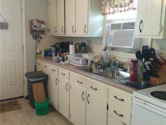 Downsizing or Starter home this would be perfect!! Corner lot w/partially, fenced yard. Living rm and hall w/new laminate flooring. Eat-in kitchen w/range and refrigerator. Washer and dryer stay. 3 bdrms. Recently updated bath. Covered front porch. 2 utility sheds. Carport w/storage.
