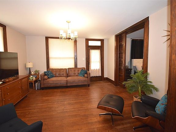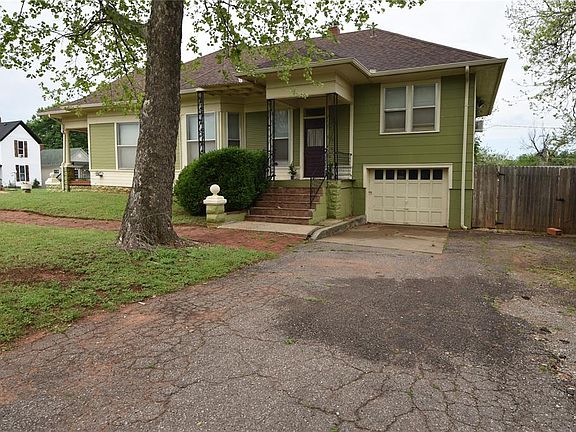 Captures history with original wood floors and beautiful original stained woodwork throughout. The kitchen counter is granite and the formal dining room includes a 3 section bay window. The upstairs BR/Office has its own entry with stairs down the west side of the home. The bath exhibits a walk-in tile shower with the downstairs bath set-up as a jack and jill for the two downstair bedrooms. The home does have central heat and air except for the upstairs north end bedroom. CH&A ducts are not run into that space, so there are window/floor type H&A. Further, the current tenant wanted immediate cooling, so the seller is leaving the portable unit in the dining room for the buyer. The master bedroom exhibits double sliding doors for entry. A surprisingly good amount of storage/closet space. Both a front and side entry porch and the garage is below the home on the north end with easy drive-in access. You will also enjoy a 4' to 5' crawl space under the home for handling repairs. The back yard is wood fenced. The roof has been recently replaced and extensive work completed on replacing all old electrical work.