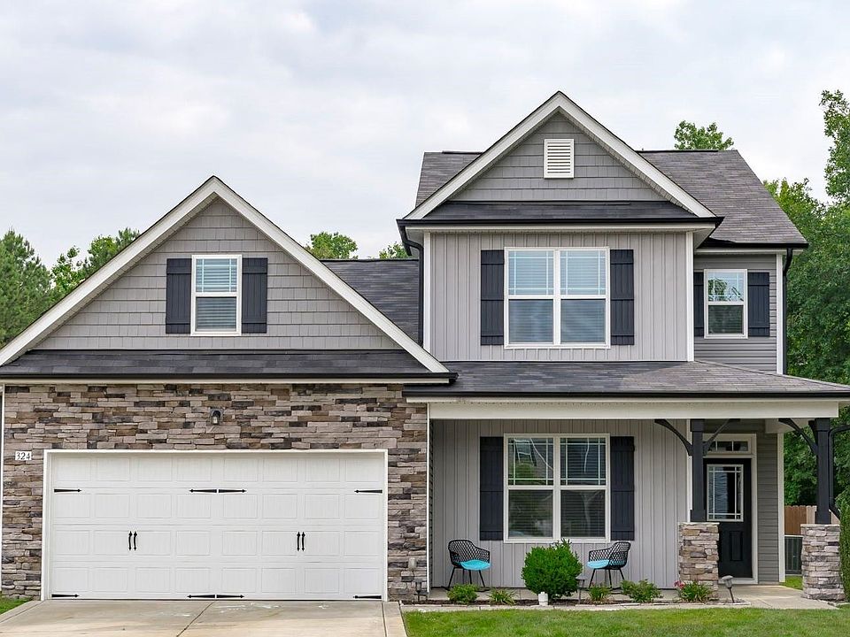 Now available, this perfectly located 4 bed/3 bath home has it all. Its open concept design is perfect for everyday living & entertaining featuring upgraded engineered hardwoods on both main and second floors, gorgeous granite countertops, kitchen island with breakfast bar and expansive fenced in backyard and screened in back porch. The first floor primary features trey ceilings, walk-in closet, dual vanities and a relaxing garden tub with a separate walk-in shower. Bathrooms have been recently updated with new modern light fixtures and the highly sought after shiplap as a high end designer touch. Don't forget about the community pool and not to mention, this home is located only 10 minutes to Main St, 6 minutes to Riverwood Golf & .9 miles from the Clayton River Walk Greenway trailhead. Welcome home.