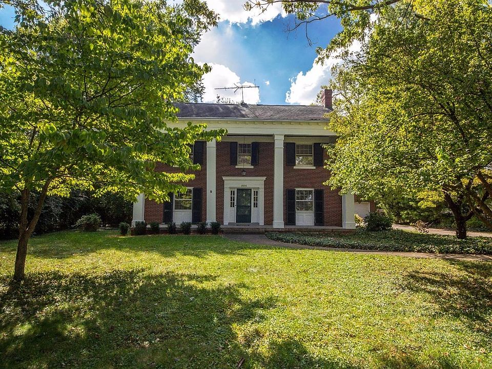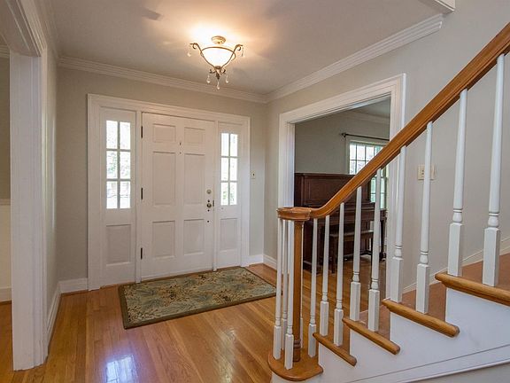Charming southern style home with a gorgeous covered front porch, flat lot, and a large detached two car garage! The first floor has a huge family room with fireplace & built-in bookcases, formal dining room which opens to the kitchen, kitchen with granite, stainless steel appliances & kitchen bar, a half bath, and a large den/ living room with NEW CARPET & plenty of windows. The second floor has three spacious bedrooms with hardwood flooring and a full bathroom. The third floor is a finished attic converted into a lovely master bedroom suite with beautiful hardwood flooring, an updated bathroom, and newer windows. The basement is partially finished as a theatre room with tv and seating conveying to buyers & NEW CARPET (partially finished with exterior walls being painted) and lots of unfinished space for storage and laundry area. Lots of hardwood throughout and recent wallpaper removal and neutral paint. Hurry to schedule your showing