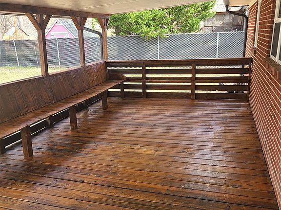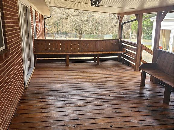 Sit on the covered back deck with built-in seats to watch the sunset or host your next party out back.