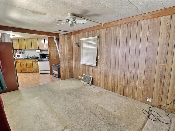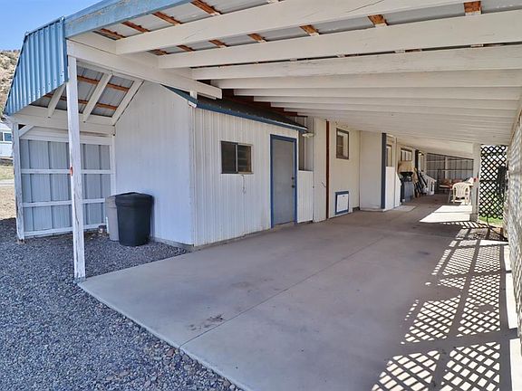 This single wide mobile home is in surprisingly good condition for it's age. 2 bedroom, 1 1/2 bath home with metal roof and metal siding. The home is dated, but in decent shape. There is a large, covered patio area out the front door which creates a private and peaceful area to BBQ and sit and relax and enjoy the views. There is a 1 car attached carport and also an attached workshop area, as well as a separate storage shed. The property used to be 2 separate parcels and there used to be another mobile home on the 2nd parcel. The parcels were combined into 1 parcel, and the other mobile home was removed, but there are 2 water taps and 2 sewer taps included with the property. You could possibly put another mobile home where the other mobile used to be or build a shop there. A lot to offer here for the price!!!