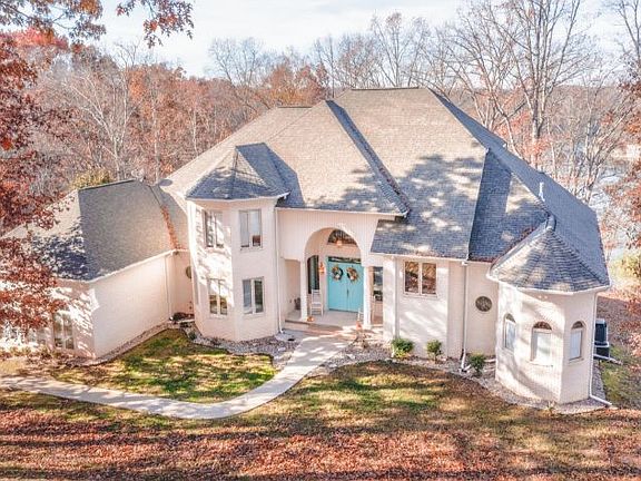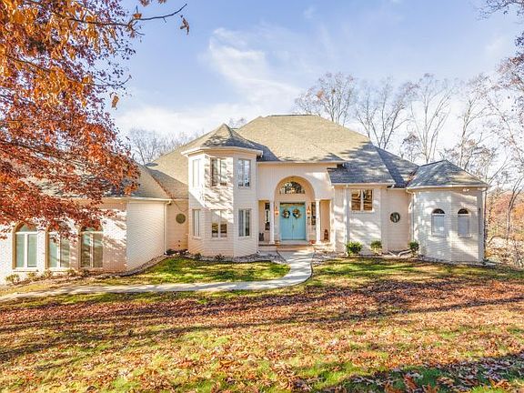 Spectacular lakeview home with 4.6 secluded acres. This home has 8000 square feet of beautiful interior space and is situated minutes from town at the end of a cul-de-sac, providing plenty of privacy. Master suite, formal living and dining rooms, laundry and huge family room that opens into the large kitchen are all on main floor. 3 bedrooms with great views and 2 bathrooms are upstairs. Huge finished walk out basement has lots of natural light, wet bar, kitchenette, bonus room, bedroom, bathroom and storage area. Outdoor wood burning Central Boiler provides back up heat source and decreases utility costs. Slate Branch boat ramp close by! Additional land available. See MLS# 3. Boundaries in video are only approximate for all land available.