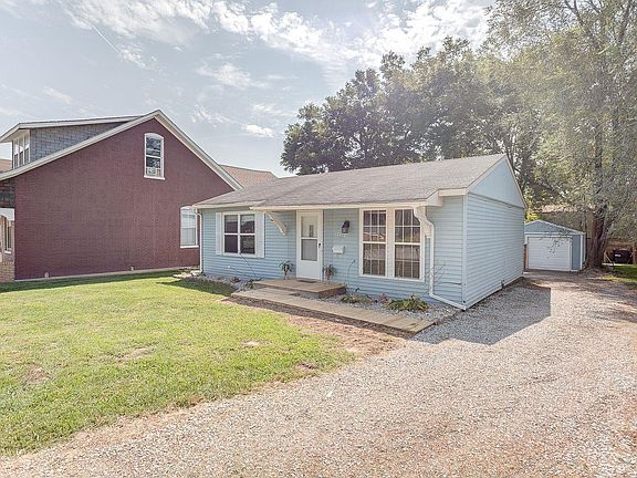 Totally updated adorable ranch style home. New luxury vinyl flooring in large living room with ceiling fan, coat closet and 2 large new windows & new front door. Kitchen offers white appliances with refrigerator, smooth top stove, disposal, built in microwave and eat-in table area, Laundry closet has washer and dryer (also to stay). Plenty of cabinets and area is large enough for future island. Newer countertop and flooring & a ceiling fan! New Back door to deck & one car detached garage. Bedroom #1 also offers new flooring, new paint & ceiling fan. Bedroom #2 also has new flooring and newly painted. All windows are replaced and tilt in. Full bathroom has new tub & shower combo with new vanity, flooring and fixtures. Landscaped front of home, new decking on front covered porch and walkway.