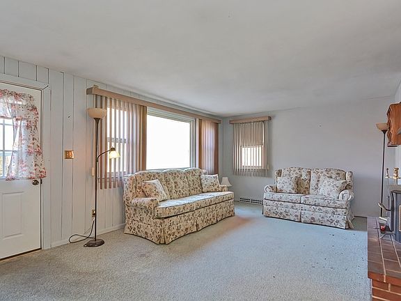 TITLE V PASSED!!! Wow! This gem has it all. Minor cosmetic updates will make this exceptionally clean, bright & sunny home yours. One-floor living at its best ~ great floor plan with an absolutely huge 28x40 attached heated garage! Property has an additional 4 sheds/garages as well. Roof is approximately 10 years old, newer furnace & water heater (2021), newer laminate hardwood in kitchen & dining room. Welcoming living room with fireplace/wood stove insert has original hardwoods under carpeting. Gorgeous hardwoods in three generously-sized bedrooms. Oversize kitchen is open to dining room, both with newer laminate hardwood flooring. The 28x40 heated garage has an extra 1,000 sq. ft of potential living space/workshop/storage above which is not included in home's sq. footage. Agricultural Zoning allows horses ~ think of all the expansion possibilities on your 5.4 acres or simply enjoy your privacy. See floor plan for layout of rooms above garage.