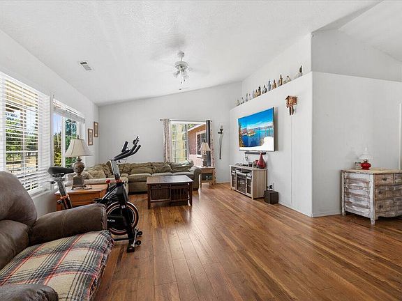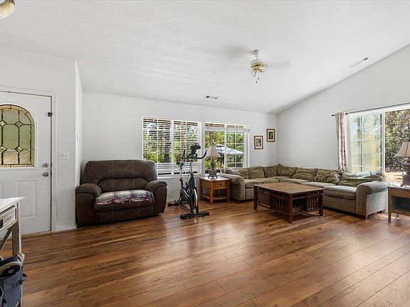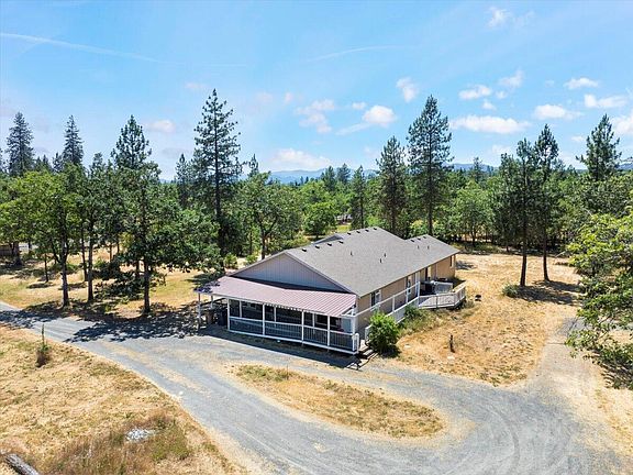 Located on a private dead-end road north of Grants Pass, this spacious single-story traditional ranch home with 6 full bedrooms and 3 bathrooms over 2416 SF of living space offers a multitude of possibilities. Could work well for a large family, accommodate an extended family setup, provide space for a home business or support foster care services. The interior of the home features a living room with a small sitting area near the front entry, the kitchen, a laundry room and a small bonus room connected to the main primary suite. Nestled on a level fenced lot of 2.5 acres with a gated entry, the property has a covered front porch, a covered side deck with a ramp that wraps around to the back of the home, multiple entry points, and versatile usage options providing ample space for storage, a shop, parking, and more. There is a chicken coop that stays with the property for those looking to start their own mini-farm.