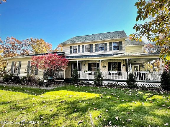 Your dream home! Beautiful custom colonial home on 3.2 acres in a lovely private setting. The tasteful interior design and color palette flows beautifully throughout this 4 bedroom 2.5 bathroom home. Modern upgraded eat-in kitchen with stainless steel appliances, family room with brick propane fireplace and large window seat and an amazing 4 season room that is warm and inviting. Formal dining room and living room complete the 1st level. Other features include owner suite, finished basement, walk-up attic, new roof and HVAC system, central AC, generac generator, wrap porch, mature landscape, fenced yard with patio and pavilion and 2 car garage. Not in a development, this home is in the perfect Stroudsburg location. Close to Rt 80/33, hospital, shopping, dining and all Pocono attractions!