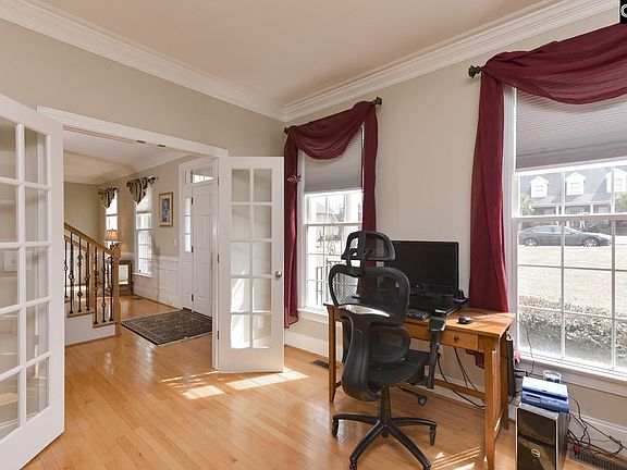 - Ceiling Fan(s), Recessed Lighting, High Ceilings, Built-Ins, Office, Ceiling Fan, Floors-Hardwood, Molding, Bookcase, FROG (With Closet)