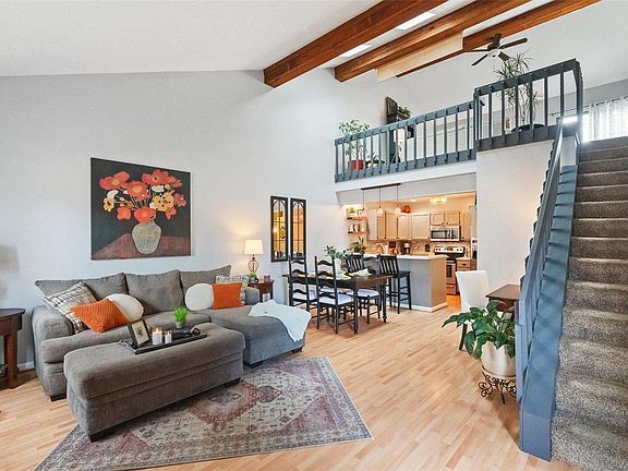 This spacious 1.5 story home features open floor plan designed to accommodate daily comfort and provide an inviting entertaining space! With many updates, it is move in ready! Enter into a great room w/ a wood burning fireplace w/ beamed vaulted ceiling and sliding door opening to a gated courtyard. Kitchen has newer painted cabinets, stone backsplash, breakfast bar, newer light fixtures, & stainless steel appliances. A huge vaulted loft has skylights for natural lighting & sliding door to deck...sunset views! Great room, kitchen & loft area have been freshly painted- walls & ceilings. Primary bedroom suite includes a luxury garden tub and there's an additional ensuite bedroom. Bedrooms have vaulted ceilings and newer paint. Baths have newer vanity tops, light fixtures, and toilets, w/ newer paint. MFL, washer & dryer to stay. Oversized 2 car garage w/storage shelves & storage closet. Community clubhouse, pool, tennis and pickleball courts & a pond. Excellent access to 94 & 40/64. Location: Interior Unit