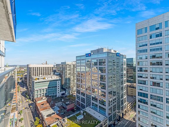 Welcome to the 20th floor of The Mondrian where style, tech, and city living come together in downtown Ottawa.This bright and spacious corner unit offers jaw-dropping panoramic views from Parliament Hill to the Ottawa River and the Centretown skyline. With floor-to-ceiling reflective glass windows (outside people cannot see the inside) wrapping the open-concept living space, natural light pours in all day long. Inside, youll find: Open concept living / dining / Kitchen. Two roomy bedrooms, Smart automated lighting, Sleek Somfy motorized blackout blinds, Rich engineered hardwood floors (2018). A modern kitchen with dark cabinetry and stainless steel appliances. The primary bedroom is oversized and features its own heat pump, wall lenght closet The second bedroom fits a queen size bed with two night tables, it can also be used as an office, or a family room. Step out onto your private balcony, no neighbours on either side offering an unobstructed view. The building presents an Outdoor pool, Terrace with luxury lounge area, Party room with its own kitchen, dining table, TV and Pool table. Outdoor dining areas and BBQ, large well equipped Gym. In-Unit storage, Under ground heated parking is extra large. Daytime Concierge with security service during the nights and weekends. Three high speed elevators. Steps from Ottawas best restaurants, cafes, shops, the LRT, Confederation Park, City Hall and Parliament Hill. Live where the city buzzes and everythings at your fingertips. Welcome home :)
