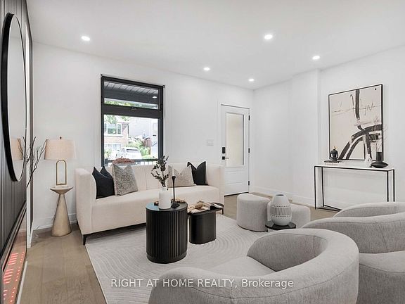 Welcome to this stunning reimagined luxury 2.5-storey residence in the heart of The Beaches. Offering approx. 1,880 sq. ft. of refined living space, this home features 3 spacious bedrooms plus a versatile loft that can serve as a 4th bedroom, 4 beautifully designed bathrooms, and a fully finished walkout basement with its own kitchen. Renovated from top to bottom, this home combines timeless design with modern convenience, showcasing engineered European wide-plank hardwood, refined millwork, sleek matte finishes, and a striking feature wall with an elongated fireplace. The custom chefs kitchen showcases Italian Sahara slab counters with an oversized waterfall island, Fulgor Milano & KitchenAid appliances, and designer lighting ideal for entertaining. Dramatic 10-ft sliding doors open to a landscaped backyard oasis with custom deck, interlocking, and stone patio. A private driveway with 2 parking spaces adds rare convenience. Upstairs, bright bedrooms include custom closets, spa-inspired bathrooms with Italian tile, and a primary suite with a glass shower and brushed-gold fixtures, while a second-floor laundry enhances daily living. With all-new mechanicals including a new furnace, 200-amp service, plumbing, waterproofing, and smart-home features, this turnkey home provides peace of mind. Steps to Queen St., Kew Gardens, and top schools including Williamson Rd. (French Immersion), and less than a 10-minute walk to sandy beaches and the boardwalks that define this lifestyle.