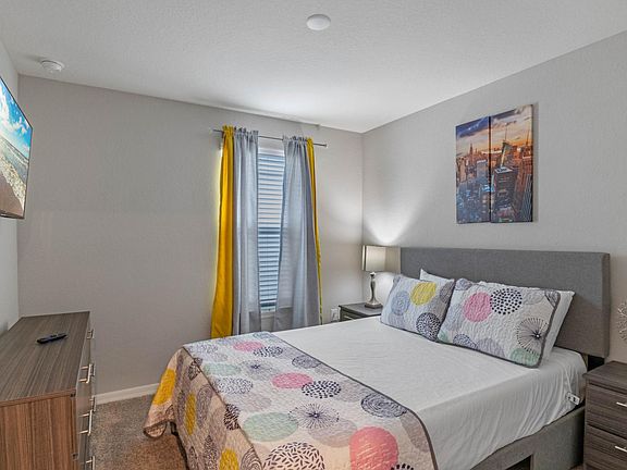 On The house is fully furnished , 1 king bed , 3 queen size bed , 2 twins bed and 5 tvs wall mounted. This BRAND NEW modern 2 story, 5 bedroom, 4 bathroom ho comes with all the comforts and high-end touches of luxury. This home is perfect for multiple to share, small groups, or golfing couples with wonderful living areas. It includes a comfortable living room with a formal dining space. The beautiful kitchen has all the gadgets and appliances you could need to feed your whole crew. This beautiful home is located in the new community of Astoria beautiful and pristine. The space About the location: Our home's location could not be any better! The community is perfectly located just minutes from Walt Disney World, Orlando, and other world famous Central Florida attractions. Universal Studios, Seaworld, Legoland, Aquatica and other water parks are all within easy reach of Astoria. Easy and fast access to major highways Interstate 4 and Hwy 27. Local shops, restaurants and world class golf are all nearby. Astoria is a new community only moments from the magic but just far enough to experience a little peace and tranquility from the busy tourist district. The glorious world famous and award winning Florida beaches of both the West and East coasts are also easily accessible and are about an hour away. Astoria is a planned community of purpose built homes designed for use as family homes consisting of 4 -15 bedroom homes to accommodate small and large groups. Though there is construction found around, this is by far a great home away from home! Other things to note No Smoking Policy: No Pet Policy: Although we love animals, we do have a strict "NO PET POLICY"