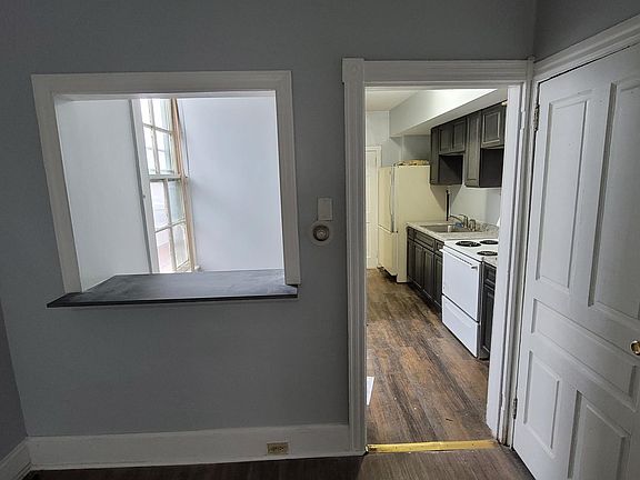 This newly renovated home has 2 large bedrooms and easily convertible to 3 bedrooms and 1.5 baths., Living Room, Kitchen, and Backyard featuring parking spaces. Walk in to your new home into a spacious living room, this leads in to a breakfast or server bar overlooking the dining area and kitchen with storage. Walk thru the kitchen and find a full bathtoom and a door leading to the porch and backyard. On the 2nd floor, find a spacious bedroom and 1/2 bath, new flooring and freshly painted walls. On the 3rd floor you'll find a spacious bedroom with new flooring and paint. In basement you'll find a gas water heater and gas boiler for heating, room for a workshop and storage.