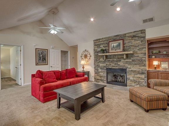 BACK ON THE MARKET! Beautiful townhouse located in the heart of Pigeon Forge and just 2/10th of a mile from the Parkway! Close to shopping, theaters, restaurants and all the Great Smoky Mountains have to offer. This one level townhouse is low maintenance living at it's best! Move in ready. Large living room has a stacked stone gas fireplace, built-in bookcase and cathedral ceiling. Open kitchen and dining area concept. Spacious Master Bedroom has a trey ceiling, large Master Bathroom with double vanities, whirlpool tub and walk in closet. Good size guest bedroom with access to the 2nd bathroom that can be shared with guests from foyer. Nice covered front porch. Attached 2 car garage. Brand new HVAC unit. Each unit in this community is beautifully landscaped and this community also features a seasonal swimming pool and hot tub. Perfect for a permanent residence, a vacation home or an overnight rental!