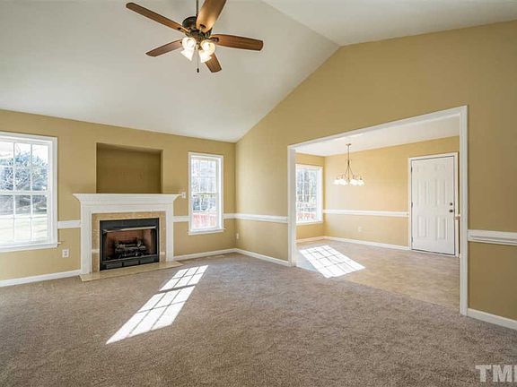 Immaculate ranch home with rocking chair front porch on over 1.3 acres. One of the largest lots in the subdivision. The spacious kitchen features lots of counter space, stainless steel range and dishwasher and opens to the family room with a fireplace. Master bedroom has a walk-in closet and lots of natural light. The two car garage has a built in work bench and overhead storage as well as French doors leading to your large fenced in yard.