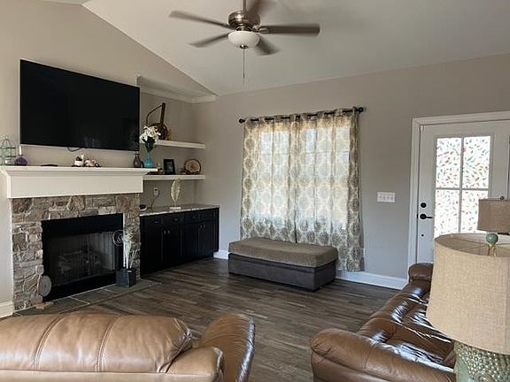 Welcome Home to this split bedroom ranch OPEN floor plan with AMAZING features! LVP flooring, granite counter tops, tile back splash, wainscoting, crown molding, stacked stone surround fireplace, built in shelving, wonderful owner's suite with barn door to the WIC. Above ground pool and huge storage building remain in the fenced back yard!