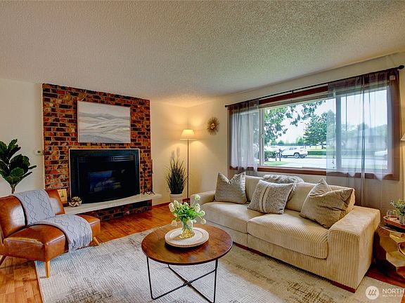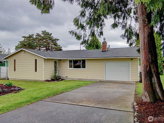 Here is the charming 3-bedroom, 1.75-bath rambler you've been searching for! This nicely maintained home features open-concept living, a cozy gas fireplace, and French doors leading to a large private fenced backyard—complete with a generous deck ideal for entertaining. Enjoy peace of mind with a newer roof & fresh exterior paint. The home also offers a handy hobby garage, a separate laundry room with washer and dryer included, nice outbuilding for extra storage. Located on a quiet street in Mount Vernon, it is close to the hospital and all amenities. Thoughtfully staged and move-in ready.