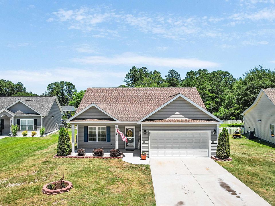 Welcome to the rural Shell Bay community! This little gem is ideally situated off Highway 905, just minutes from downtown Conway, and mere miles to the beach! For those who love adventure, this community provides a secure fenced lot for members to store their boats and campers!  This charming 3-bedroom, 2-bathroom residence offers a serene retreat with modern conveniences and elegant features. Nestled on a generous quarter-acre lot, this home boasts ample space for outdoor activities and gardening. Take advantage of the VA assumable loan, offering potential of a much better rate for a Buyer.  Inside, the home features vaulted ceilings that enhance the sense of space, built-in shelving for stylish storage solutions, and thoughtful design elements like under-cabinet lighting in the kitchen and bar area for a warm, inviting ambiance. The Primary suite offers a large shower and a deep walk-in closet, providing a private sanctuary within your home. The finished garage provides extra utility and storage space, ideal for vehicles, hobbies, or a home gym. Step outside to a beautifully landscaped yard that backs up to a picturesque pond. The covered patio with a built-in television is perfect for entertaining or unwinding while enjoying the view. Additionally, a detached storage building offers even more space for your tools, outdoor gear, or seasonal decorations. This Shell Bay gem combines comfort, style, and convenience in a desirable community. Don’t miss the opportunity to make this stunning house your new home. Contact us today to schedule a viewing and experience the beauty and tranquility of this exceptional property.