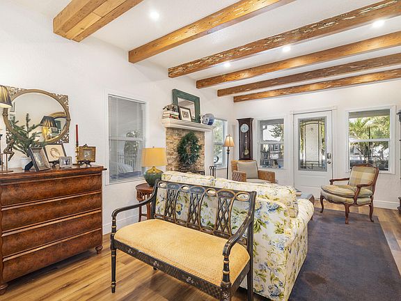 Charming 1925 Spanish Mission home in the heart of the Southend! This updated compound in the Belair Historic District boasts a main house with two bedrooms, a sunny Florida Room, and updated full bath. The property also has a larger than usual detached guest cottage with another two bedrooms and full bath. Upon arrival, you are welcomed by the graceful front porch to catch the breezes off the nearby waterfront. From there, you enter into the light and bright living area, complete with woodburning fireplace and the original Pecky Cypress wooden beams spanning the ceiling. 324 Pilgrim Road underwent extensive renovations in 2020 to update the property to update the systems and modernize the home to today's standards. With a layout made for entertaining, the living area flows easily through to the dining area and then to the kitchen which is updated with wood cabinetry and granite countertops. Stainless steel appliances from GE include a gas range to please the chef. Also off of the living area is the Florida Room which makes for the perfect sitting area but would also serve well as a den or home office. Both bedrooms are spacious and the full bath is up-to-date with clean lines accentuated by white tile and a glass shower enclosure.