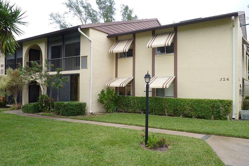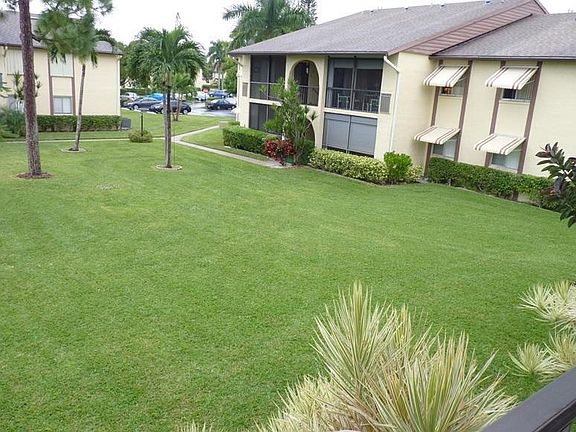 2nd floor unit with green courtyard view. Screened patio entry with roll up shutters for easy storm prep. All carpet throught. Open layout with mirror living room and dining area next to breakfast bar. Kitchen has plenty of counter space and includes all appliances. Laundry room fits full size washer and dryer. Master bedroom features a walk in closet. Bedroom 2 also has a walk in closet. Storage closet on the patio. Friendly community with a pool, clubhouse, lakeside walking paths and planned social activities for the residents. This is easy showings anytime!