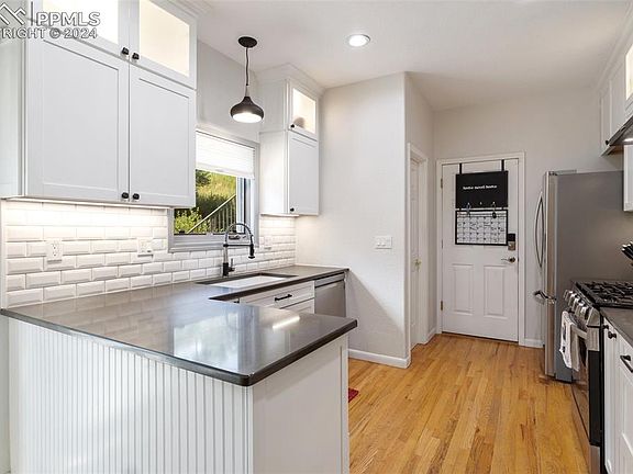 Welcome to this dream home nestled in the picturesque town of Manitou Springs! This beautifully updated 3-bedroom, 2-bathroom house combines modern amenities with the charm of its natural surroundings. **Remodeled Kitchen:** The heart of this home boasts a fully remodeled kitchen featuring sleek countertops, contemporary cabinetry, and a high-end gas stove, perfect for culinary enthusiasts. Enjoy the warmth and ambiance of a wood-burning stove in the spacious living area, making it the ideal spot for cozy winter evenings. Three generously sized bedrooms offer ample space for relaxation and privacy. The primary suite is its own oasis with a remodeled 5 piece master bathroom with attached walk-in closet, additionally there's a 2nd oversized closet with built-ins perfect for additional storage. Two well-appointed bathrooms, designed with modern fixtures and finishes, ensure convenience and style. Situated in the desirable Manitou Springs, this home offers stunning views, easy access to local amenities, and a peaceful, small-town atmosphere. A lovely deck off the kitchen is perfect for cookouts or morning coffee. The large yard provides the perfect setting for outdoor activities, gardening, or simply soaking in the Colorado sunshine. Experience the perfect blend of modern comfort and mountain charm in this remarkable Manitou Springs home. Schedule a viewing today and make this your forever home!
