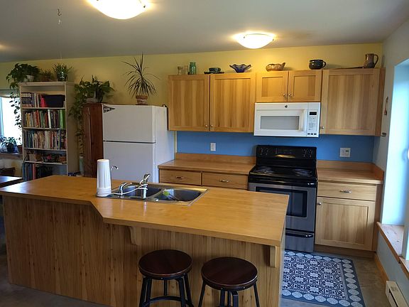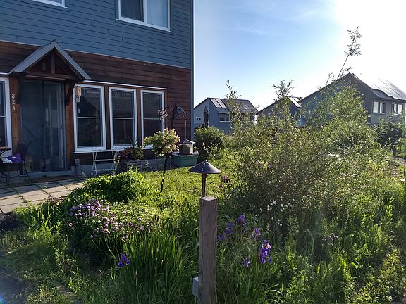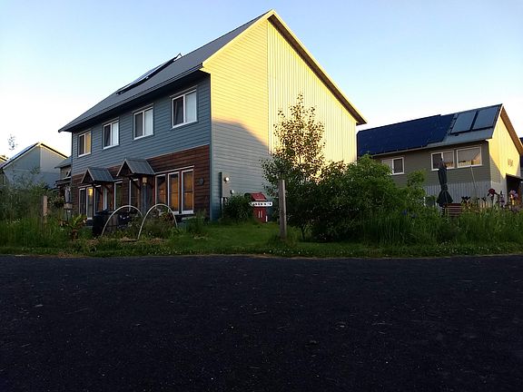Home for sale in EcoVillage at Ithaca (EVI) (https://ecovillageithaca.org/), a very caring, sharing co-housing community in the Finger Lakes region of upstate New York. Built in 2015 the 1,088 sq ft. duplex features an open floor plan downstairs with half bath, kitchen, dining, and living rooms; three bedrooms plus full bath and generous landing are located on the second floor. A large yard with shrubs, a young Aspen tree, and gardens surround all three sides of this unit. Features include beautiful hickory kitchen cabinets, butcher's block counter tops, dishwasher, microwave, and range. A long island in the galley kitchen allows for seating space near the south-facing wall of windows. A pantry connected to extra storage is large enough to hide a chest freezer and is located across from the dining area. An east-facing window in the middle of the house brings in the morning sun. The living room exits to the back yard with direct access to the path to the community garden. Wood stairs lead to the second floor which has beautiful rose oak hardwood. Landing is large enough to offer a small nook and space for bookshelves. Two bedrooms on the south side are perfect for children or as hobby/guest rooms. Large windows and long closets feature there. Upstairs bathroom has bathtub/shower, a tiled floor, and a maple cabinet. In the spring and summer, fall asleep to the sound of peepers from the master bedroom. Walk-in closet with ample space houses the energy recovery ventilator. House is equipped with energy efficient building standards including 1-foot thick walls with extra insulation, high r-value triple-pane windows that swing in as well as tilt open. Average heat, hot water, and electric costs for a family of four who are home a lot are $90/month. Neighborhood features a spacious common house with sitting room, activity room, large kitchen and dining area, and two guest rooms. Asking $265,000. Photos at: https://photos.app.goo.gl/v2bhm4sMNB2fAj779 All potential residents must complete a membership process. All adult residents must provide 2-4 hours of community work each week. The TREE neighborhood residents have adopted dynamic governance, an efficient and transparent form of governance that involves coordinating and delegation of responsibilities. Benefits of living at EcoVillage include use of 175 acres, trails for hiking, birding and skiing, community garden, two swimming/skating ponds, basketball court and sauna. Two organic farms are located on the property. There is space in the common house for community meals, children's play area, meeting rooms, guest rooms and laundry.