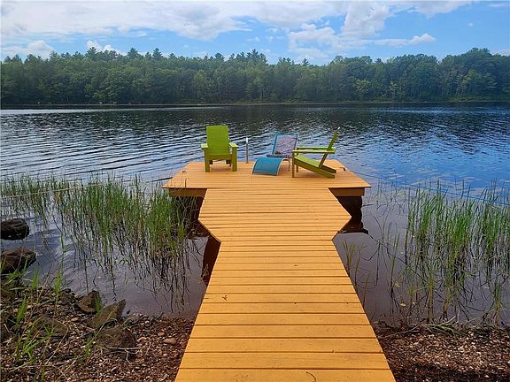 Incredible waterfront view will steal your heart! This home is sitting pretty on a small hill with a gentle slope to Percy Lake & private floating dock. Boat shed close to water to store all you need to enjoy waterfront living. Perfect lake for swimming, fishing & boating. Enjoy the view from full length waterside deck which has multiple access points into the home, including 3 season sunroom. Large great room with stone fireplace has plenty of windows to showcase this view in every season. Updated kitchen (2017) has lots of counter & cabinet space. Home features 3 main level bedrooms including a large master with walk-in closet. Two full bathrooms. Upstairs features a loft-style bedroom & den/office area that overlooks the great room below. Unique layout allows new owner to create the space they want. Outside you will find a heated & insulated detached garage with man-cave. Plenty of parking near house, as well as additional parking near road. Check it out and make it your own!