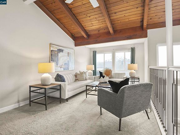 MOTIVATED SELLER! WELCOME HOME! Prime Pleasant Hill Location! Enjoy living in this beautifully updated 3 bedroom 2 bath townhome in the highly desired Ridgeview community. Prepare to be impressed from the moment you walk through the door and see the stylish modern stairway. Fall in love with the spacious open floor plan with plenty of natural light cascading through two story windows. Soaring tongue and groove wood ceilings, and luxurious wood-look floors. The updated kitchen features freshly painted cabinets, granite countertops, and stainless steel appliances. Enjoy easy access from the dining room to the outdoor deck for seamless dining and entertaining, the ideal place to enjoy your morning coffee or relax under the stars. The generously sized primary bedroom features an ensuite with walk-in shower. Both well-appointed secondary bedrooms share a convenient hall bathroom. Large attached two-car garage with sparkling epoxy floors and under-house storage. Ridgeview amenities include a community pool, tennis courts, clubhouse, and nearby hiking trails. Conveniently located near Paso Nogal Dog Park, great restaurants and shopping, three Bart stations, and freeways, and top-Rated Pleasant Hill Schools including Valhalla Elementary.