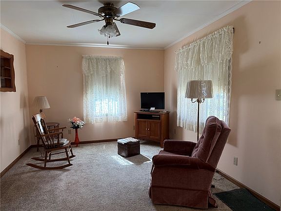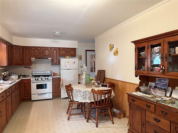 This well-maintained two-bedroom ranch home features a full basement with ample storage space and potential for additional finished living areas. The property boasts a spacious eat-in kitchen with numerous cabinets, a main floor laundry room, and an expansive backyard. Refrigerator and stove stay with the home. Call for your viewing today!